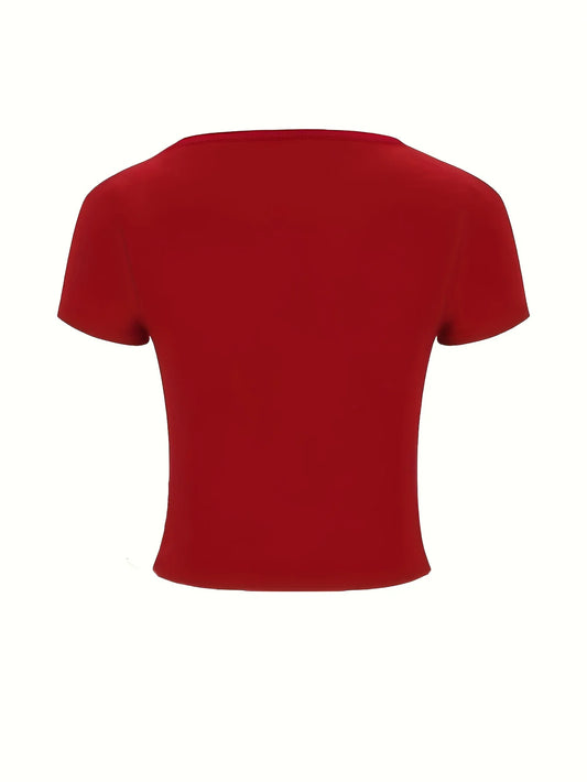 Women's simple and fashionable solid color V-neck short sleeved T-shirt